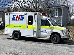 Emergency Health Services (EHS) is a branch of the Nova Scotia Department of Health tasked with providing emergency medical services. It is also responsible for transportation of patients between hospitals and medical facilities. At present, all ground ambulance and air ambulance service in Nova Scotia is contracted by EHS to Emergency Medical Care (EMC), a subsidiary of Medavie Health Services.