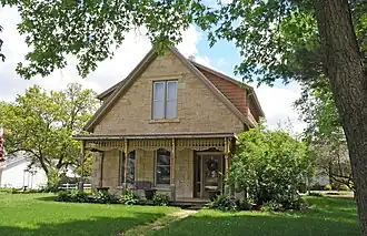 The Emily Hornback House is a historic residence located in Winterset, Iowa, United States. The Hornbacks were a prominent family in town. Brothers George and James were in business with their father building wagons. Emily was married to one of the brothers, although it is unclear which one.[2] She bought this property on contract beginning in 1856 and acquired the title outright in 1860. The house was built about the time she started to acquire the property. She lost the property to land agents Pitzer and Knight in 1865. The 1½-story limestone structure is composed of ashlar and rubble. It features chamfered rustication, an octagon-shaped stone chimney, and a full-length front porch with four ornately turned posts and spindles around the top. It was listed on the National Register of Historic Places in 1987.[1]