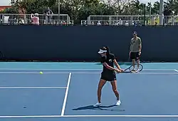 This season marked her first appearance in the "Sunshine Double" (Miami and Indian Wells Opens), after having only played at Indian Wells before. Her only success came at Indian Wells with a victory over former world No. 4, Caroline Garcia, in her first match, before losing in the subsequent round.[91][92] The early hardcourt season concluded with a first-match loss in her Miami Open debut.[93]