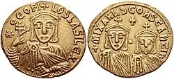 On 2 October 829, Theophilos succeeded his father as sole emperor.[7] Theophilos continued in his predecessors' iconoclasm, though without his father's more conciliatory tone,[6] issuing an edict in 832 forbidding the veneration of icons.[8] He also saw himself as the champion of justice, which he served most ostentatiously by executing his father's co-conspirators against Leo V immediately after his accession.[9]
