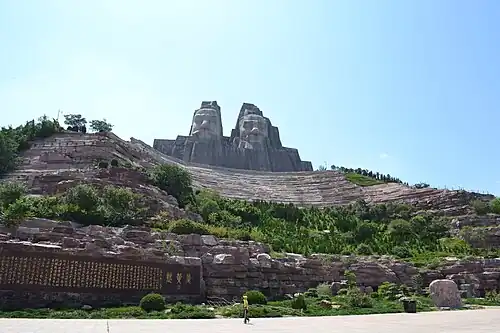 The sculpture of Emperors Yan and Huang is a monument in China that was carved from a mountain on the Yellow River. The overall monument height is 106 metres (348 ft); a 55-meter base platform with 51-meter busts on top. They depict the two mythical emperors known as Yan Emperor (Yandi) and Yellow Emperor (Huangdi). The construction lasted 20 years and was completed in 2007,[1] at a cost of US$22.5 million.[2] They are located in Zhengzhou, the capital of Henan province, People's Republic of China. The statues commemorate politics and the economy.[3]