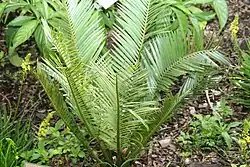 This cycad is stemless, growing from an underground stem that's about 30 cm long and 25 cm wide. Occasionally, a small part of the stem may emerge above the ground.