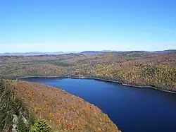 Enchanted Pond is a mountain pond in the U.S. state of Maine. Situated in the Western Maine Mountains in the Northwest Somerset Region, the pond is located in a deep mountain valley between Coburn Mountain (to the east) and Shutdown Mountain (to the west). Near its southern end, the pond is distinguished by two rockslides from the exposed cliffs of these mountains that extend down into the water along both shores.[3] Enchanted Pond is fed by mountain springs and Little Enchanted Pond, and is the primary source of Enchanted Stream which flows into the Dead River, a tributary of the Kennebec River. Development on the pond is limited to a small set of sporting camps at the northern end of the pond and one remote camp on the southwest shore,[3] both a part of Bulldog Camps. There are no islands in the pond.