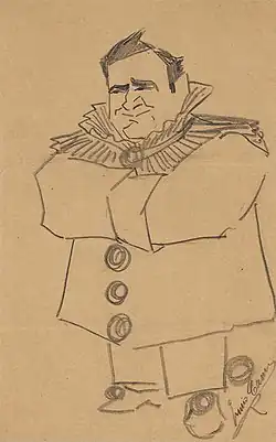 A fastidious dresser, Caruso took at least two baths a day and enjoyed good food and convivial company. He forged a particularly close bond with his Met and Covent Garden colleague Antonio Scotti – an amiable and stylish baritone from Naples. Caruso was very superstitious and habitually carried several good-luck charms with him when he sang. He often played cards for relaxation, especially the games, Scopa and Bazzica. An expert caricaturist, he made countless sketches of himself, friends, singers, musicians and even strangers. His wife, Dorothy, said that by the time she knew him, her husband's favourite hobby was compiling scrapbooks of his caricatures and reviews of his singing. He also amassed valuable collections of rare coins, postage stamps, watches and antique snuffboxes. Caruso was a heavy smoker of strong Egyptian cigarettes. This deleterious habit, combined with a lack of exercise and the punishing schedule of performances that Caruso willingly undertook season after season at the Met, may have contributed to the persistent ill-health which plagued him the last year of his life.[33][34][35]