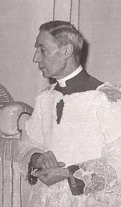 Appointed prefect of Pontifical Ceremonies on 13 June 1947, Dante was entrusted with assisting and overseeing the sacred functions performed by the pope and other cardinals. In 1953, he assisted in the consistory of Pope Pius XII, whom he deeply revered.[1] In 1959 he was named pro-secretary of the Congregation of Rites, and later its secretary in 1960. In 1960, Time magazine named him a likely candidate for membership in the College of Cardinals, a speculation, which was prompted by the announcement of Pope John XXIII, that he had named three persons in pectore cardinals.[2] As papal ceremoniere, he participated in the conclaves of 1914, 1922, 1939, 1958, and 1963, and the coronations of Popes Benedict XV, Pius XI, Pius XII, John XXIII,[3] and Paul VI.