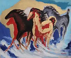 Art critic Nino del Prete wrote that Garff's pallette was the chromatically richest one possibly could imagine.[4] In 1972 in an article in the summer supplement of the daily paper Il Messaggero, N. Nobiloni wrote that the oil painting, ‘Quercia Falconieri,’ which brought Enrico Garff the second prize of the ‘Concorso Internazionale di Pittura Italia 2000’, depicts a famous oak at the gate of Villa Falconieri in Frascati.[5]