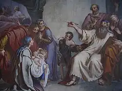 He frescoed four medallions in a chapel dedicated to the Blessed Alessandro Saul, in the church of Sant' Alessandro in Milan. Among his paintings of sacred subjects are the following: St Simon Stock, receives the scapular from the Virgin Mary, altarpiece commissioned by the fabbriceria of Calolzio; Saints Nazarius and Celsus condemned to Martyrdom commissioned by the fabbriceria of Urgnano; Saint Helen and the Miracle of the Cross, commissioned by the fabbriceria of Rudiano; The Triumph of the Addolorata, for the church of San Lorenzo in Lodi; The Transit of St Joseph for the parochial church of Seriate; and Blessing of the Children, commissioned by Count Petrobelli of Bergamo.