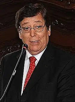 He was elected as a senator, standing as a United Left (IU) candidate.[2] In the 1985 election he was elected with 111,808 votes.[6] At the time, he was called the 'Gentleman of the Peruvian Left'. He led the left-wing faction in parliament.[4]