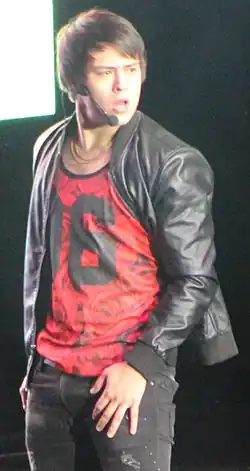 In 2010, he co-starred in the indie war film Diego and His Brothers.[16][17] He joined ASAP XV as one of Star Magic's "Gigger Boys" in April,[18] and in May, co-starred in the teleserye Rosalka, in which he played Andrew. He was originally set to appear in Kokey @ Ako,[19] but his character was written off in favor of Jason Francisco. In October, he was given the role of Joco, the younger brother of Paolo Barredo (Gerald Anderson), in the film Till My Heartaches End.[20] He got his first hosting stint in the ABS-CBN teen variety show Shoutout!. This was revamped and renamed to Shoutout!: Level Up, but the show was eventually cancelled due to poor ratings.[21]