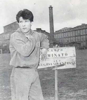 Sívori was born in San Nicolás de los Arroyos, Buenos Aires Province, into a family of Italian descent. His paternal grandfather, Giulio Sivori, was an immigrant from Cavi di Lavagna, a hamlet in the province of Genoa, while his mother Carolina was of Abruzzese ancestry.[3][4][5] As a youngster Sívori became heavily interested in the game of football and by the time he reached his teens he was signed up to a side from the city of Buenos Aires, River Plate.[3][6] The teenage Sívori was given a chance to break through into a squad which included players like the famed forward Ángel Labruna and Félix Loustau who established themselves in the era of La Máquina, one of the foremost formations in football history.[7] He soon earned the nickname El Cabezón (bighead) from the fans, due to his hair, outspokenness, confidence, arrogance, and playing style.[3][7][8]