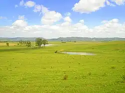 The western border of the state is going through desertification. The soil which is sandy, receives little rainfall, and has by nature sparser vegetation cover, besides suffering from the overload of cattle raising and mechanized agriculture. The director-president of the State Foundation for Agricultural Research (Fepagro), Marcos Palombini, said in 2006 that the state has 1.4 million hectares prone to desertification and that in that year 25% of this area was already compromised.[46] According to the Ministry of Environment, historically this biome (pampas) had its area decreased by 54%, and between 2008 and 2009 it lost another 331 km2. Among the main causes are the occupation of rice cultivation, cattle raising, and reforestation with exotic species, such as eucalyptus and pine.[104] Additional aggressions arise from the inadequate use of water resources, among them irrigation and occupation of swamps for cultivation, which in some regions has caused a significant alteration in the environment, with the disappearance of species, erosion, and salinization of the soil, contamination of the water table, spread of diseases, conveyance of toxic loads to rivers and aggradation of their beds, as well as the depletion of natural sources.[105]