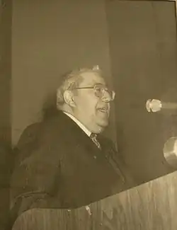 In 1946, he was the vice president of the executive board (vicepresidente dell consiglio direttivo)[13][14] of the newly founded Movimento Italiano di Unità Sociale, which gathered the fascist elit[15] and preceded the MSI.[16][17]