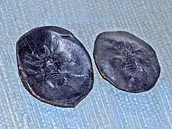 | Fossils of Eophrynus prestvicii from Dudley, United Kingdom, on display at Galerie de paléontologie et d'anatomie comparée in Paris | |
