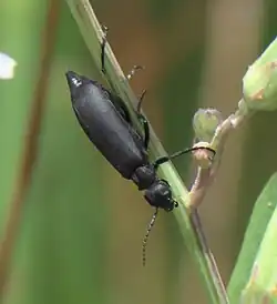 Epicauta pensylvanica, known generally as the black blister beetle or black aster bug, is a species of burning blister beetle in the family Meloidae.[1][2]