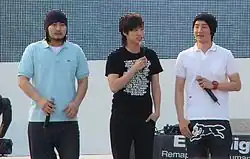 Epik High was formed in 2001[7] upon frontman Tablo's return to South Korea after graduating from Stanford University.[8] Having previously met rapper Mithra Jin during a trip back to Seoul while still in college, the duo began performing together in the local underground hip hop scene with the Movement crew, one of the most prominent Korean hip hop crews of the time that included the likes of Uptown, CB Mass, Leessang and Drunken Tiger. Initially they intended to debut as a duo but decided to add a DJ for their live performances, in the same vein as Dilated Peoples.[1] They recruited DJ Tukutz, a turntablist-disc jockey known to the Hongdae club scene who occasionally played with CB Mass.[9][10][11]