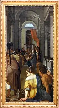 In 1604 - 1608, he contributed to the decoration of the Sala del Consiglio of Modena. He painted a St Francis of Assisi shown clear water ampule by an Angel for a room in the Palazzo Comunale, and an Annunciation for the church of the Madonna del Paradiso in Modena. He painted a Holy Martyrs Faustino and Giovita for the church of the same name. He also painted an Annunciation for the church of San Pietro, Modena.