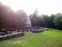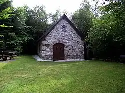 The Eremitage Maria Reizenborn, or Räzebore, is a former hermitage in Rhineland-Palatinate, Germany (Hunsrück mountain range). The Hermitage is located on a pilgrimage route of Simmern nearby Spabrücken, which crosses the Soonwald back. This place was chosen by the Monks in the Middle Ages due to the beneficial effect of its legend, because it is where Maria Reizenborn was born, in Hunsrücker Platt Räzebore. It served the pilgrims, as well as the hunters, in the 17th century as a rest stop. A sanctuary built by the Celts in pre-Christian times, in the year 1000, has been found in the Evangelical Church in Riesweiler, walled in by stone figures, which are still visible.