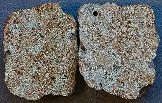 Erg Chech 002 (EC 002) is an ancient andesite meteorite discovered in the Erg Chech region of the Sahara Desert in Algeria. It is believed to be a fragment of a chondritic protoplanet that is over 4.566 billion years old, and is believed to be the oldest known volcanic rock on Earth.[2][3][4] It is held at the Maine Mineral and Gem Museum.[5]