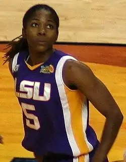 White went on to play collegiately for the Lady Tigers of Louisiana State University. White was heavily recruited by Legendary Coach Sue Gunter, but due to Gunter's declining health at the time, White never played for her. White was coached by 3 different head coaches during her collegiate career. Pokey Chatman, Bob Starkey, and Van Chancellor. As a sophomore at LSU White played in 34 games and started the final 20 of the season. She started for the first time in her career on January 19 against Alabama and had 10 points, six assists and four steals. As a junior, she played in 37 games with 36 starts. She poured in a career high 20 points against Baylor.[2] Some of her LSU teammates, Sylvia Fowles and Quianna Chaney also entered WNBA draft.[3] White along with Fowles and Chaney led the Lady Tigers to NCAA Final Four appearances all four years at LSU, although they never won a championship.