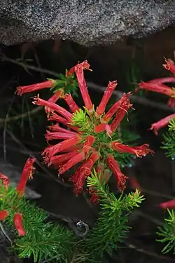 Erica nevillei, the red rock-heath, is a plant belonging to the genus Erica and is part of the fynbos.[1] The species is endemic to the Western Cape.[2] It occurs in the Cape Peninsula at Noordhoek Peak, Chapmans Peak, Constantiaberg and Kalk Bay Mountains. It sprouts and is stimulated by veld fires, the habitat is safe due to the high incidence of fires on Table Mountain.[3]