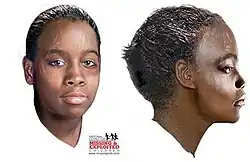 Due to the condition of the body, visual identification was impossible.[13] The National Center for Missing & Exploited Children created three renderings of the victim depicted in life, one around the time she was discovered and the next two, a frontal and profile image in 2014.[1][12]
