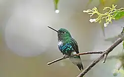 The emerald-bellied puffleg (Eriocnemis aline) is a species of hummingbird in the "brilliants", tribe Heliantheini in the subfamily Lesbiinae. It is found in Colombia, Ecuador, and Peru.[3][4][1]