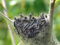 - ^ Ruf, Claudia; Fiedler, Konrad (December 2002). "Tent-based thermoregulation in social caterpillars of Eriogaster lanestris (Lepidoptera: Lasiocampidae): behavioral mechanisms and physical features of the tent". Journal of Thermal Biology. 27 (6): 493–501. Bibcode:2002JTBio..27..493R. doi:10.1016/S0306-4565(02)00022-0.
