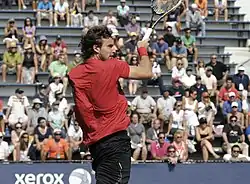 At the 2007 US Open, Gulbis upset 30th seed, Potito Starace, in the first round and eighth seed, Tommy Robredo, in the third round, the latter for the loss of only 6 games. In that match, Gulbis broke Robredo six times and had 39 winners to Robredo's seven.[19] Gulbis' run was finally halted by former World No. 1, Carlos Moyà, to whom he lost in four sets.[20]