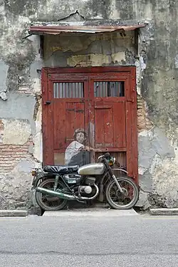 In 2012, Zacharevic received worldwide recognition after creating a series of six street art murals for the George Town Festival in Penang, Malaysia, with the BBC calling him Malaysia's answer to Banksy.[3] These images depict scenes of everyday Malaysian life, using local people as the models. The two most popular are Children on Bicycle and Boy on Motorcycle; a combination of installation and painting allows the outside community to interact with the works. These murals now stand as cultural landmarks in George Town, complete with plaques and frequent queues of people waiting to have their photographs taken with the works.[4]