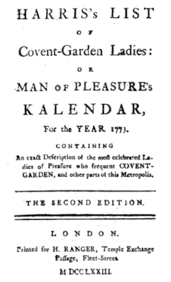 Accounts of prostitution have continued as a major part of the genre of erotic literature. In the 18th century, directories of prostitutes and their services, such as Harris's List of Covent Garden Ladies (1757–1795), provided both entertainment and instruction.