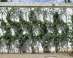Espalier as a technique seems to have started with the ancient Romans.[3] In the Middle Ages the Europeans refined it into an art.[2] The practice was popularly used in Europe to produce fruit inside the walls of a typical castle courtyard without interfering with the open space and to decorate solid walls by planting flattened trees near them. Vineyards have used the technique in the training of grapes for hundreds or perhaps even thousands of years.