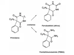 Primidone is another first line agent recommended in the treatment of ET. Primidone is an anticonvulsant which metabolized into phenobarbital and phenylethymalnonamide.[36] This medication has shown the same beneficial effects in reducing tremors as propranolol and is recommended for use based on guidelines from the American Academy of Neurology and the MDS Task Force on Tremor. The initial dose of primidone is recommended at 25 mg per day and should be increased up to the maximum dose of 250 mg per day. This strategy was recommended to help avoid the possible side effects of nausea, vomiting, and excessive sedation of primidone.[65] Primidone is the preferred medication for the treatment of ET in the geriatric population compared to propranolol. In addition, Combination therapy of both Propranolol and Primidone is recommended for people who do not show benefits from either propranolol or primidone as monotherapy.[80]