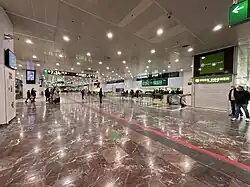 Madrid is two and a half hours away on the AVE Madrid–Barcelona high-speed rail line, after the link between Camp de Tarragona and Barcelona opened in 2008. Extension of the high-speed network east into France connecting with the TGV network was completed in January 2013 upon completion of the Perpignan–Barcelona high-speed rail line and a direct TGV service started in December 2013.[4][5] The high speed service uses platforms 1 to 6, which have now been converted to standard gauge for use by the AVE services, unlike the remaining 8 for other RENFE services using broader Iberian gauge tracks. A second major railway station in Barcelona, Estació de la Sagrera, currently under construction, is expected to join it in order to provide a wider access to high-speed and long-distance trains to the north of the city.