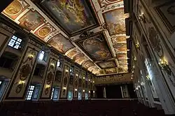 The first prominent member of the family was Ferenc Zerházy (1563–1594), who was elevated to the title of baron of Galántha (an estate his family had held since 1421) and took the name Esterházy. Family history since this time is described according to three lines of descent, each originating in one of Ferenc's sons: the Fraknó (or Forchtenstein) line, the Csesznek line, and the Zólyom (or Zvolen) line.[7]