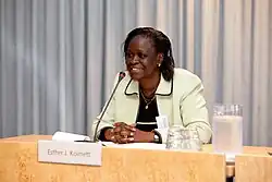 She has also worked as the Director General Public Investment and Portfolio Management at the National Treasury.[3] Esther also served as the Managing Director and Chief Executive Officer of the Kenya Post Office Savings Bank.[4]