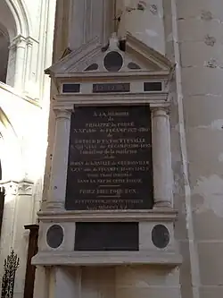 He died on 13 October 1423[5] and is buried in the nave of the abbey church of Fécamp.