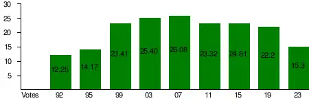 | 1995 | 76,634 | 14.17 (#2) | 16 / 101 | Coalition (1995) | ||