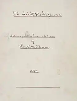 Ibsen sent a fair copy of the completed play to his publisher on 15 September 1879.[16] It was first published in Copenhagen on 4 December 1879, in an edition of 8,000 copies that sold out within a month; a second edition of 3,000 copies followed on 4 January 1880, and a third edition of 2,500 was issued on 8 March.[17]