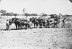 In 1885 a shearing shed was built at Etadunna and five years later an artesian bore was sunk at Kopperamanna and the mission was able to collect fees from passing drovers, adding to the missionaries' income, which came mainly from donations and the sale of wool.[2]