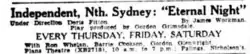 Eternal Night is a 1954 Australian play by James Workman.[2] The original production was directed by Gordon Grimsdale who had directed Workman's scripts on radio for the thriller series Thirty Minutes to Go.[3]