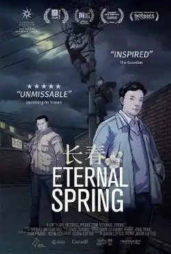 Eternal Spring (Chinese: 长春) is a 2022 Canadian adult animated documentary film written, directed and co-produced by Jason Loftus.[1] Based around the animation of Chinese artist Daxiong, the film centres on Falun Gong's 2002 hijacking of broadcast television stations in Changchun, and China's continued repression of ethnic and religious minority groups.[1]