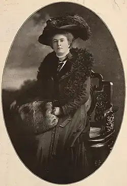 In 1909 she started a lecture tour of the United States. She spoke at Carnegie Hall filling the orchestra pit and her talks were well received. She returned in 1910 offering a wide range of talks on her notable ancestors and child humorists like Lewis Carroll.[11] She spoke in St. Louis on April 11 at the invitation of Amabel Anderson Arnold and others. The St Louis Equal Suffrage League cited her talk as the inspiration for the organisation's formation.[12]