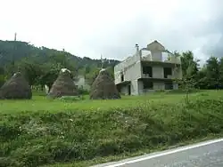 In Kozluk in June 1992, Bosniaks were rounded up and placed in trucks and trains to remove them from the area.[75] In Bijeljina, non-Serbs were also evicted from their homes and dismissed from their jobs.[76] Arrested non-Serbs were sent to the Batković camp,[77] where they performed forced labor on the front lines.[78] Serb paramilitary singled out Bosniaks and used violence against them. In the Višegrad massacres of 1992, hundreds of Bosniaks were rounded up on a bridge, shot and thrown into the river or locked in houses and burnt alive; Bosniak women were raped and a Bosniak man was tied to a car and dragged around the town.[79] 70% of all expulsions occurred between April and August 1992, when the Serb forces attacked 37 municipalities across Bosnia, reducing the non-Serb population from 726,960 (54%) in 1991 to 235,015 (36%) in 1997. 850 Bosniak and Croat villages were razed to the ground.[61]