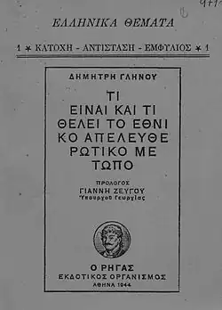 In many ways, EAM was a continuation of the Popular Front that the KKE had attempted to create in 1936, but was far more successful.[4] In 1941, the conditions of extreme poverty owing to the economic exploitation by the Axis occupation, most notably the Great Famine of 1941-42 together with the experience of defeat in April 1941 made many Greeks receptive to EAM's message.[4] Before the 4th of August Regime was established in 1936, Greek politics were characterized by a "clientelist" system under which a politician, who was usually from a well-off family, would set up a patronage machine that would deliver goods and services in his riding in exchange for the votes of the local people.[5] Under the clientelist system in Greece, issues of ideology or even popularity were often irrelevant as all that mattered was the ability of a politician to reward the men who had voted for him.[5] The clientelist system made politics in Greece very much a transactional and personalized affair, and as a result, most Greek political parties were weakly organized.[5] Greek men usually voted more for the man best perceived to be able to reward his voters rather than a party. Greek politicians jealously guarded control of their patronage machines, and vigorously resisted efforts to create better organized political parties as a threat to their own power.[6] Most notably the attempt by Eleftherios Venizelos in the 1920s to give the Liberal Party more structure was defeated by various Liberal grandees as a threat to the clientelist system.[7] Unlike the traditional Greek parties that were loose coalitions of various politicians, the Greek Communist Party was a well-organized party designed for an underground struggle, and was much better suited for resistance work.[7] Starting under the 4th of August regime and even more so under the Triple occupation, the clientist system broke down as none of the politicians had the power to alter the policies carried out by the Bulgarians, Italians and Germans. Much of EAM's appeal centered around the fact that it argued the people should mobilize and organize themselves to cope with the disastrous occupation, instead of passively hoping that one of the traditional politicians might be able to arrange some deal with the Germans to improve living conditions.[8] The British historian David Close wrote: "EAM became a party unique in Greek history in achieving mass support while its leaders remained obscure".[9]