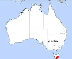 - ^ Fensham, R.; Laffineur, B.; Collingwood, T. (2019). "Eucalyptus cordata". IUCN Red List of Threatened Species. 2019: e.T133378753A133378755. doi:10.2305/IUCN.UK.2019-3.RLTS.T133378753A133378755.en. Retrieved 28 September 2021.
