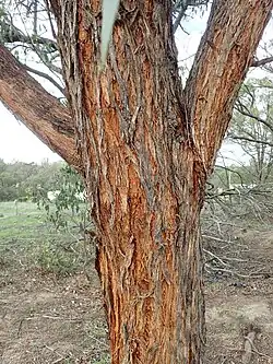 Eucalyptus youmanii, commonly known as Youman's stringybark,[2] is a species of small to medium-sized tree that is endemic to eastern Australia. It has rough, stringy bark on the trunk and branches, lance-shaped or curved adult leaves, flower buds in groups of seven, white flowers and hemispherical fruit.