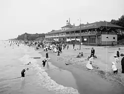 Designed to be a family-friendly park, the Humphreys would not admit anyone who had consumed intoxicating beverages at a bar directly across the street from the entrance to the park.[1] Signs throughout the park instructed that only children were permitted to wear shorts, because the Humphreys thought that proper dress would promote a family-friendly atmosphere.[1] At one point, the park advertised that it would "present nothing that would demoralize or depress," and that visitors would "never be exposed to undesirable people",[3] in which they included African Americans.[2] In August 1910, the park was the site of an exhibition flight by aviator Glenn Curtiss from Euclid Beach to Cedar Point and back.