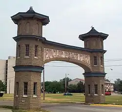 Perhaps the most famous of the remnants of Euclid Beach Park is the arched main gate. This archway has been declared a Cleveland landmark, and is now protected from demolition. The arch was severely damaged by a hit-and-run driver in January 2007.[15] On June 12, 2007, the rebuilt arch was rededicated. On July 17, 2025, the arch was moved from the roadway to an adjacent lot to be made the centerpiece of a park.[16]