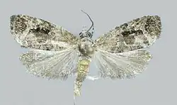 The wingspan is 17–21 mm. Adults are on wing from June to August.