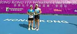 She also competed in the doubles and was given a main-draw wildcard in 2016 (w/ Katherine Ip) and 2018 (w/ Zhang Ling) but went out in the first round to Nao Hibino / Alexandrina Naydenova and Alizé Cornet / Zheng Saisai, respectively.[41][42]